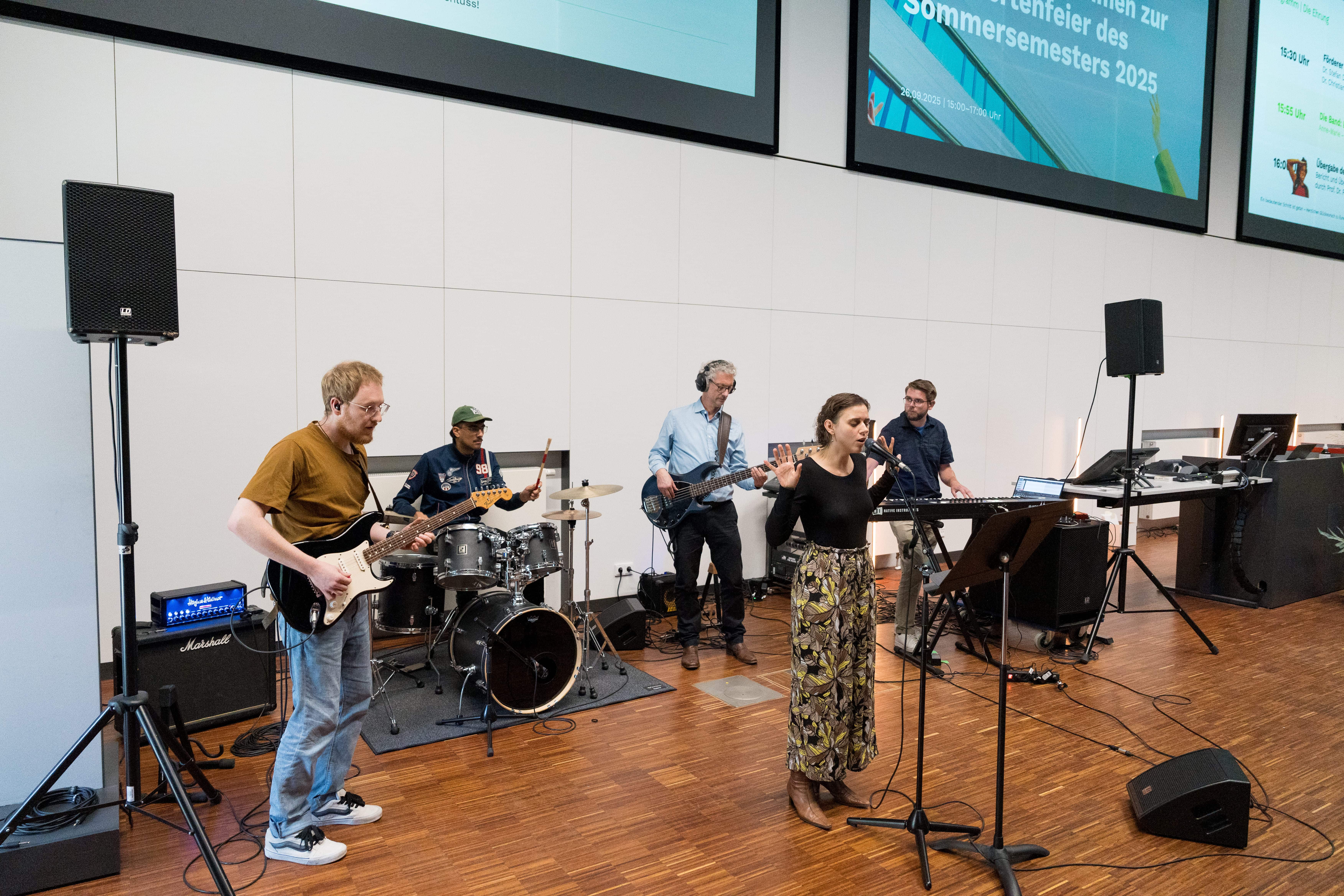 Zum beschwingten Start spielte die Band „Bestandteile“ des Fachbereiches Sozial- und Kulturwissenschaften eine packende Version der Power-Ballade „Youth“ der englischen Indie-Folkband Daughter.